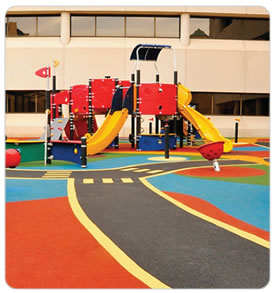 When choosing surfacing for your play area, we evaluate your maintenance concerns, safety issues, accessibility requirements, and budget. Based on this evaluation, we can recommend the best solution for you. Our products include: